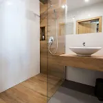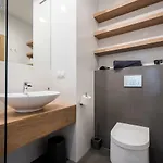 Das Apartament Targi Z Garazem I Silownia ist mit einem Sofa und einem Schreibtisch möbliert und bietet moderne Ausstattung wie einen Flachbildfernseher mit Satellitenkanälen und WLAN. Die Sicherheitseinrichtungen im Zimmer umfassen ein Safe und ein persönlicher Safe. Die Unterkunft verfügt über 1 Schlafzimmer. Das Badezimmer ist mit einer behindertengerechten Dusche und einer getrennten Toilette ausgestattet, während eine Duschhaube und Badelaken ebenfalls zur Verfügung stehen.
